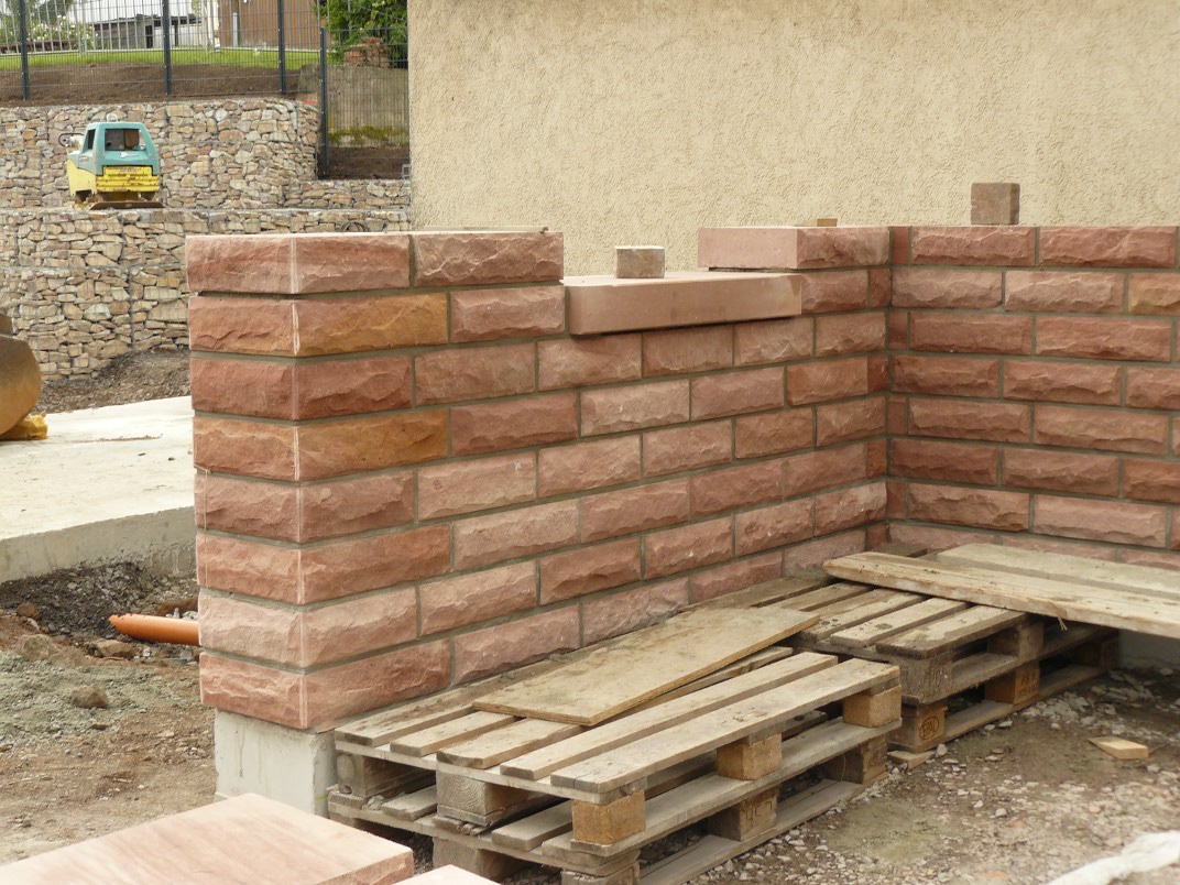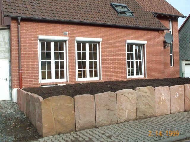 Mauerwerk in den verschiedensten Bearbeitungen inklusive der Herstellung von Ecksteinen, Pfeilersteinen und erforderlichen Formstücken. Bossensteine u. Schichtsteine gefluchtet sowie sämtliche handwerkliche Bearbeitungen auf Nachfrage für Neuanlage und Ergänzungen an vorhandenem Baubestand.